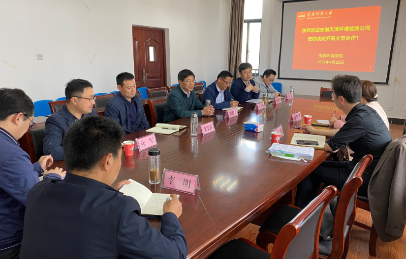 安徽天清环境检测公司负责人对学校的热情接待表示感谢,并指出,学校的发展是有目共睹的,在扎根安庆、服务安庆等方面做出了巨大贡献。他就企业基本情况、所从事的专业领域、企业发展过程中从事的机遇与挑战等方面进行了介绍,并表示愿意深化与学院在人才培养、产学研合作、成果转化、毕业生就业等方面开展全方位合作。