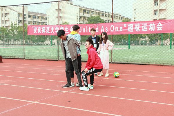 “加油,加油!” “一二三,一二三!”助威声和口号声一阵高过一阵。5月13日上午,校学生会在龙山校区东门操场举办了“United As One”趣味运动会,各学院学生会代表队和校学生会代表队共17支队伍参与了比赛。最终体育学院获得团体冠军,教师教育学院和生命科学学院分别获得团体亚军和季军。