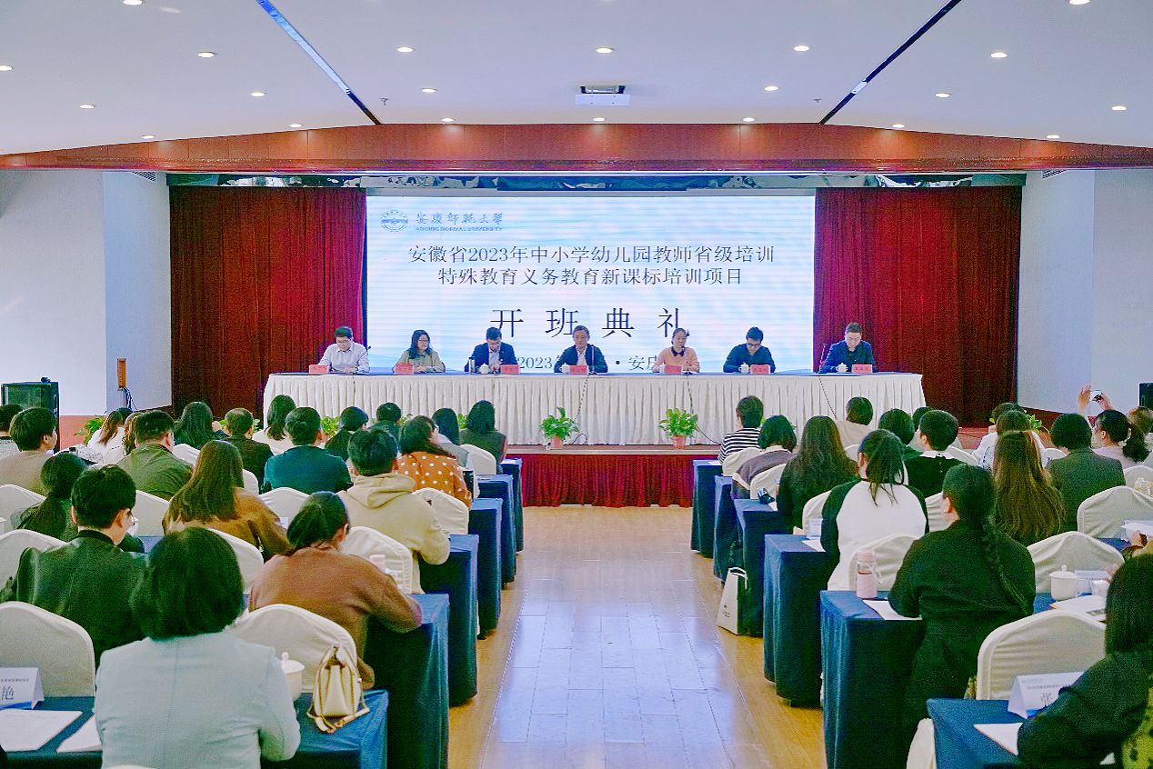 10月29日,安徽省2023年中小学幼儿园教师省级培训——特殊教育义务教育新课标培训项目在beat365官网顺利开班。安徽省教科院特殊教育教研员陈启刚,继续教育学院副院长代花,培训部相关负责同志,教师教育学院特殊教育系主任、项目首席专家郭启华教授,项目组成员以及全体参训学员参加开班式。开班式由教师教育学院党委副书记许世平主持。