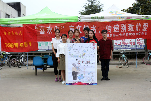 “愿你浮生半世,归来仍是少年”、“西风谢了花残,古道远了边关”……你可曾见到过这些优美的句子被写成盲文的模样?5月29日,特殊教育专业学生举办“喜欢你”盲文情书活动,以“传递别样的爱”为主题,在安苑食堂吸引不少同学前来参加。