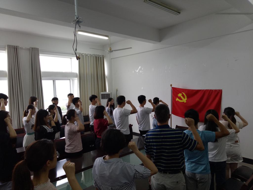 6月20日,经济与管理学院组织26名新发展党员开展入党誓词宣誓活动。学院党委书记李亦亮同志和党支部书记参加了宣誓仪式。