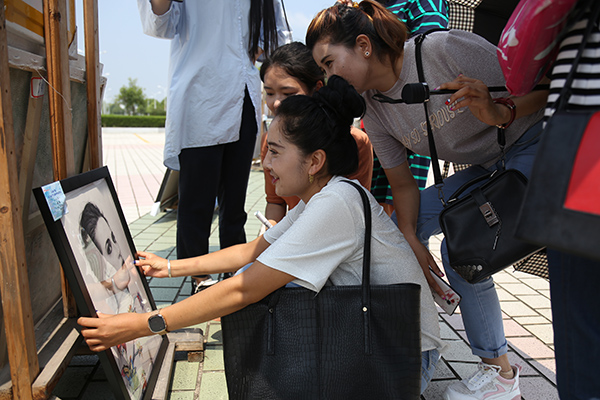 广场上展示出的画作吸引了不少校内外的美术爱好者来到义卖现场。“看到这些画,我觉得美术学院的同学们都非常棒,义卖活动非常有意义,我在日常生活也会积极参加类似的公益活动。”数学与应用数学专业2016(1)班的张雅琴说。物理与电气工程学院的老师王鹏已经不是第一次来到义卖现场了,今年他还特意带来了自己的朋友挑选画作。“这几年我都会过来购买画作,义卖活动是美术学院学生们发挥特长、展示能力的平台,更是他们献爱心的途径。”他说,这些作品质量不错,购买画作的原因一方面是觉得具有欣赏价值,另一方面也想通过购买画作也献一份爱心。