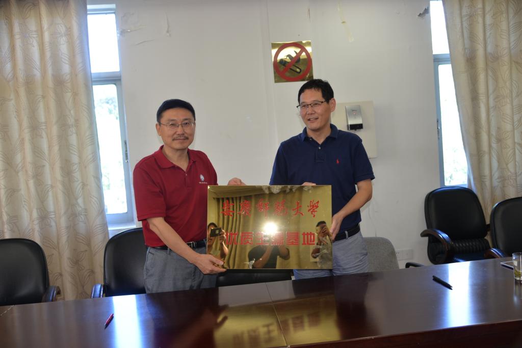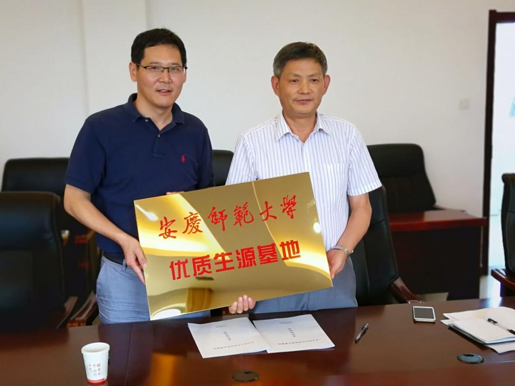 6月26日,物电学院赴潜山县野寨中学和太湖县太湖中学开展招生宣传工作,并在两所学校举行了beat365官网“优质生源基地”的授牌和签字仪式。学院党委书记江贵生、野寨中学校长徐汉生、太湖中学校长潘德安以及两所学校的有关领导参加了授牌和签字仪式。