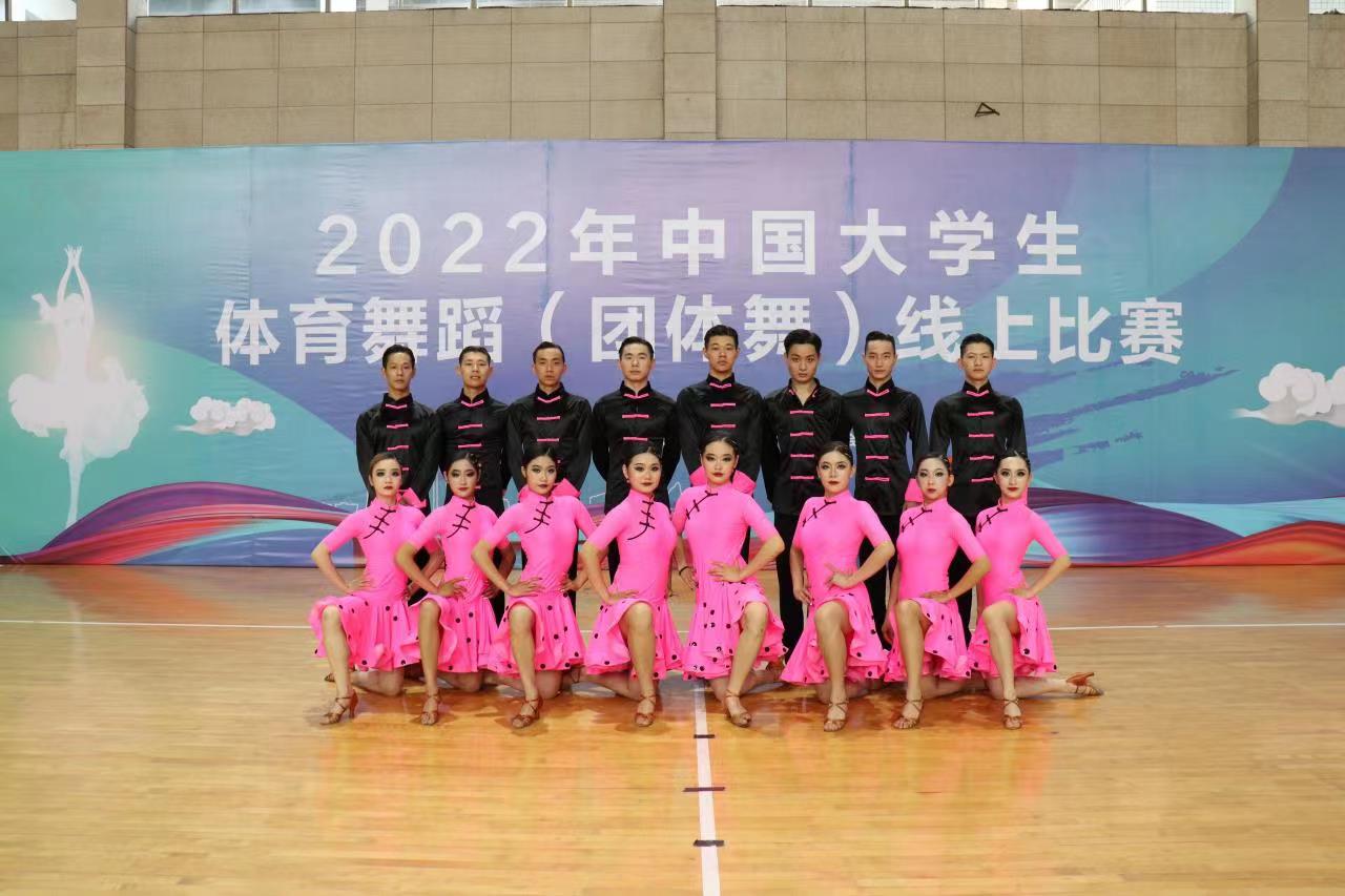 11月6日,由中国大学生体育协会主办、中国大学生体育舞蹈分会执行的2022年中国大学生体育舞蹈(团体舞)线上赛落下帷幕。beat365官网体育舞蹈代表队在夏尚群、汪洋、李伟志三位老师的指导下,组队参加专业组拉丁队列舞和艺术表演舞两个项目比赛,最终荣获丙组拉丁队列舞一等奖(第一名)和丙组艺术表演舞三等奖,这是beat365官网学生第三次获得全国综合性大学专业组舞蹈赛事该项目的最高奖项。