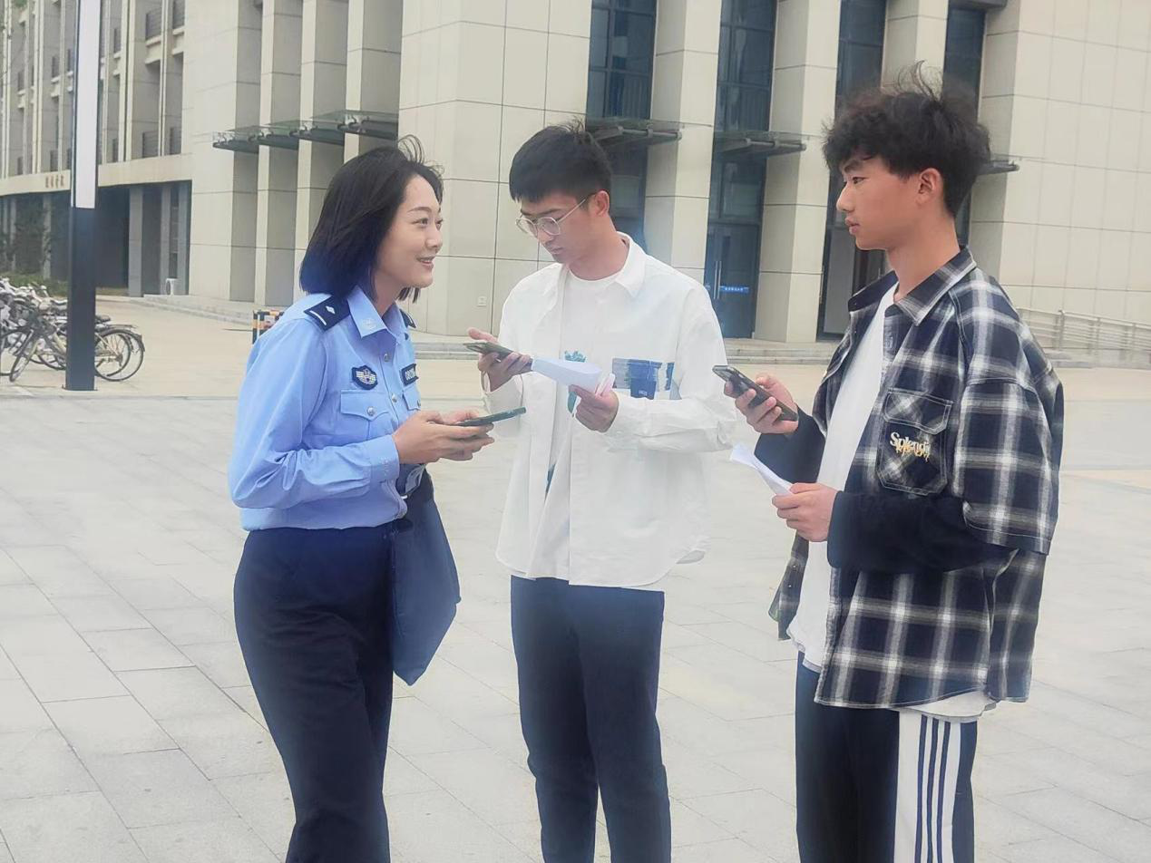 讲座结束后,大观区委政法委工作人员、beat365官网师生志愿者在校园内通过发放宣传单页、“一对一”宣讲等方式,指导学生们正确安装使用“国家反诈中心”APP。