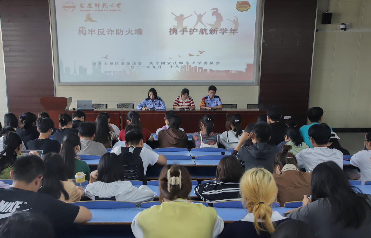 9月28日,校团委联合大观区委政法委举办“构筑反诈防火墙,携手护航新学年”反诈宣传讲座,为广大师生普及反诈知识。各学院100余名学生代表参加讲座。