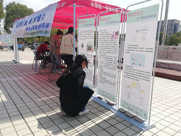 “每天慢跑两小时和抗抑郁药的治疗效果并无显著差异”、“向朋友和家人倾诉烦恼,有利于保持心灵的干净整洁”……海报上列举出了许多常见的春季心理疾病及其调适方法。国际经济与贸易专业2017级的袁玉雯说:“心理疾病是我们经常会忽视的问题,通过这样的活动让我更了解自己,也更懂得如何调节自己的情绪。”