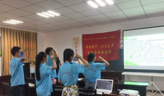 宣讲进行时,服务团队长杨姣姣着重提到:“新时代国家高度重视三农问题,重视环境保护,把生态建设写入了宪法,把‘人民日益增长的美好生活需要’放在了较高的政治高度,对农村更是大力提倡‘学乐富美’,实施农村人居环境改善等计划……”赢得了在座群众的一致认同,宣讲热火朝天地进行着。宣讲接近尾声,服务团组织了一场环保知识竞答赛,与在座群众积极互动。