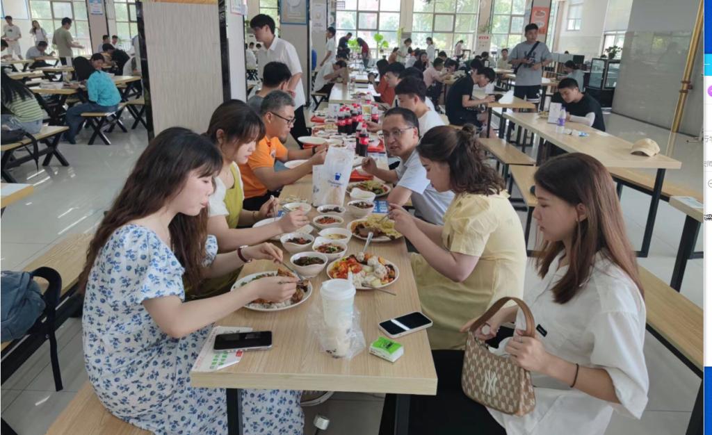 典礼结束后,学院领导班子成员、毕业班辅导员和教师代表在校内西苑食堂陪同毕业生共进午餐,向毕业生送上诚挚的祝福,询问毕业生的未来去向和职业规划。毕业生们则畅所欲言,分享四年感人回忆,表达其对未来的期待和向往。