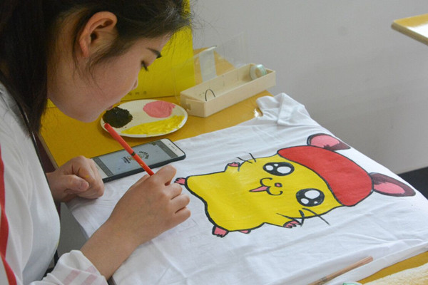 粉红豹、小猪佩奇、夸张的表情包、卡通情侣、抽象画……各种样式、风格的T恤被手绘“设计”出来,是否让你眼前一亮呢?