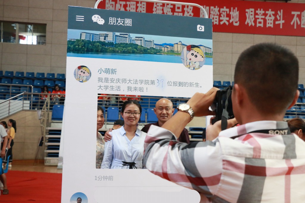 “我是安庆师大法学院第39位报到的新生。大学生活,我来啦!”笑脸伴随着合影板上的文字定格,这张照片将在四年后重新回到新生的手中。“我们想,对于大学生来说,开学第一天,一定是让他们非常难忘的一天,于是我们就想出了这样的方法,想留下他们刚进入大学时的那份心情。同时,等到其毕业时深切感受大学四年的成长历程。”负责给新生拍照的迎新志愿者董远东说。(文/学生记者 邱焱平 图/董远东)