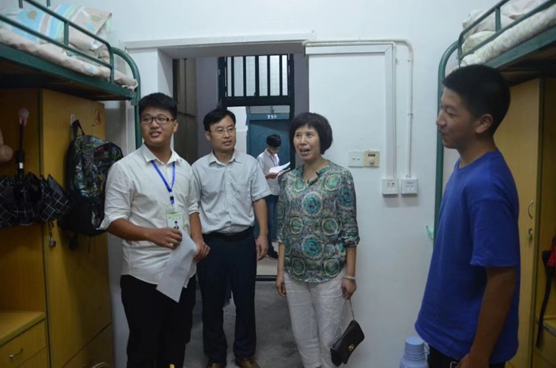 9月8日晚,资源环境学院党委书记周葆华、副书记刘燕杰等在学院新生辅导员的陪同下,深入学院2018级新生宿舍看望刚刚报到的新生,关心和询问他们入学报到和生活情况。