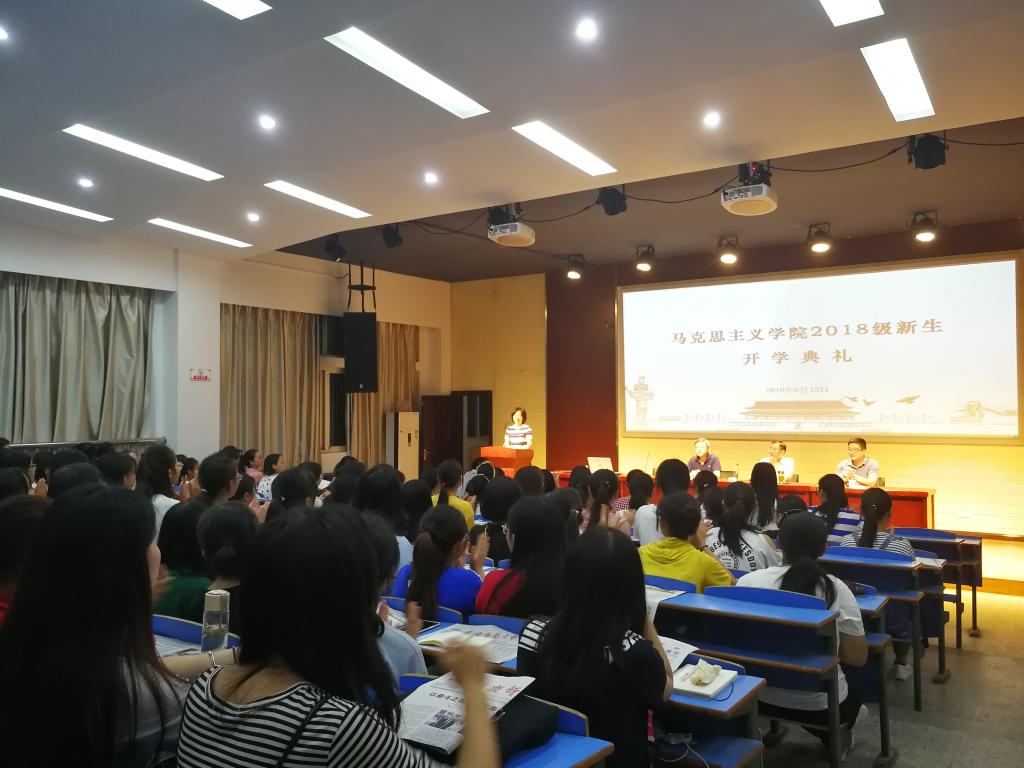 9月12日晚,马克思主义学院2018级新生开学典礼举行。院长罗本琦、党总支书记余精华、副院长张俊生,学院各办公室主任、全体辅导员,以及在校生代表和全体2018级本科生和研究生参加典礼。典礼由党总支副书记闪茜菁主持。