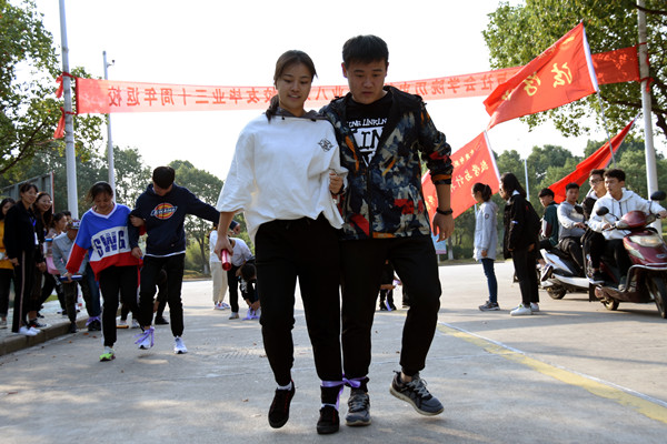 “噼!啪!噼!啪!”像炮竹被点燃后爆炸的声音不断传来。在国学知识校园越野赛的六、七站点之间,正在举行紧张刺激的挤气球游戏比赛。男女选手需要在不使用手的情况下,用身体把气球挤爆,挤爆五个气球之后方可过关。选手们到达后,迅速分成两人一组开始比赛,然而进度却有所不同。有的选手面对面轻轻一抱就能将气球挤爆,而有的选手则显得十分扭捏,尝试了几个不同的动作之后还是没能挤爆气球,反而还把气球挤到了地上。经过前后多次摸索,选手们都顺利地完成了挤气球的任务。“我觉得挤气球的技巧就在于我们要紧紧地拥抱在一起,要能‘放得开’,否则就很难成功。”文化产业管理专业2018级的吴茹芬笑着说,“我觉得国学知识越野赛把学习知识和运动游戏结合在了一起,身边很多同学都积极报名参加。通过这次比赛,我也认识了很多新同学,结识了很多新朋友。”