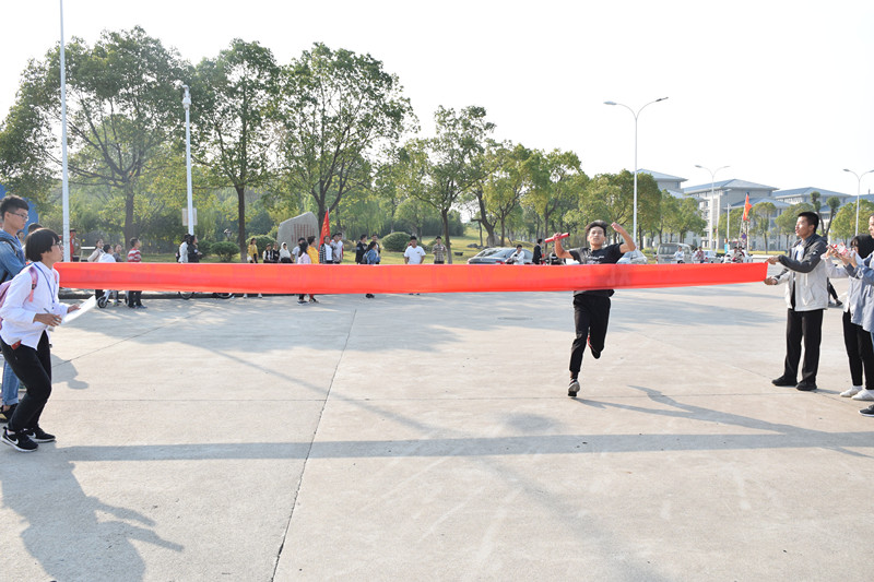 “快!快!快!”站在九号比赛点等候出发的张倩文催促着她的伙伴,来自人文与社会学院历史学2018(2)班的她,承担着学院代表队冲向终点的任务。“我平时就挺喜欢运动的,尤其是跑步,”张倩文说道。“在正式比赛前我们对比赛路线进行了熟悉,做了团队配合的规划,往届参与过的学长学姐也给我们传授了经验,所以取得了第一名的成绩还是很满意的。”