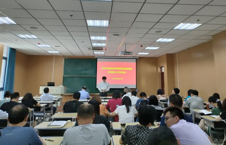 9月22日,经济与管理学院在M212室召开师德师风建设问题专项整治工作动员会。学院领导许俊杰、黄先军、周毅出席会议,全体教职工参加会议,院长杨国才主持会议。