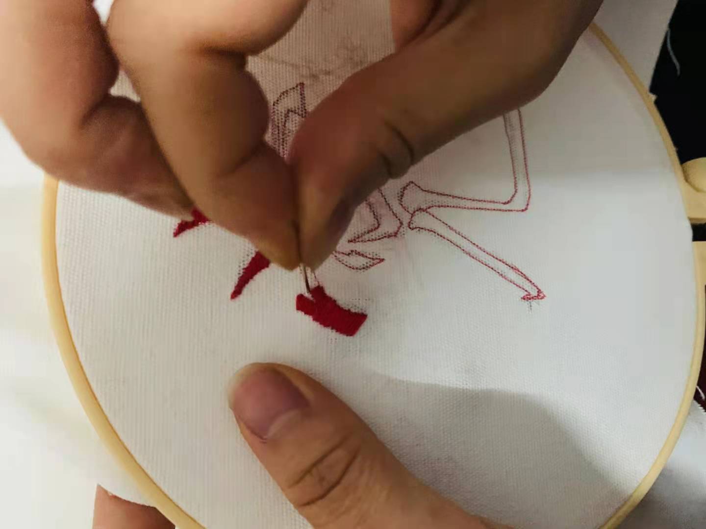 美术学专业2018(2)班的张冰冰第一次尝试了刺绣工艺,为庆祝建党100周年完成了她的刺绣“处女作”:一个“党”的大字位于中心位置,旁边以梅花作为点缀。张冰冰介绍,由于是第一次尝试刺绣,手法和技巧方面还比较生疏,作品上面没有过多复杂的图案内容,“党字,不仅是绣在了布面上,更是绣在了自己的心上。”张冰冰说,自己作为一名共产党员,应该时刻心中向党,以党员的标准严格要求自己。