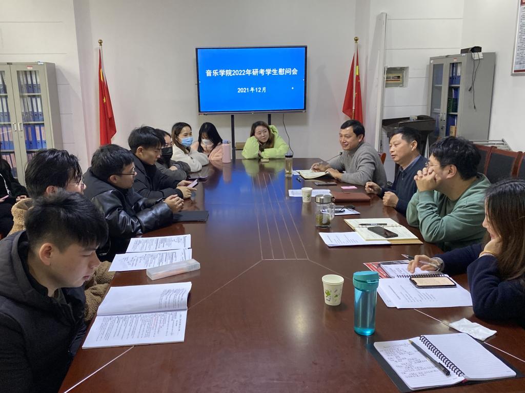 “我想要怒放的生命,就像飞翔在辽阔天空......”12月16日,一首《怒放的生命》在艺术楼一楼会议室响起,音乐学院开展2022年研究生考试慰问活动。音乐学院党委书记李新建,副书记肖之进,副院长徐冉、高艳以及全体在校考研学生参加了活动。