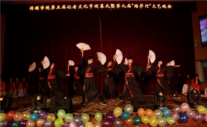 作为群口相声节目,《出个节目》以诙谐幽默的语言表演方式赢得了现场观众的掌声,激烈而有趣的辩论也体现了传媒学子的思辨力与创造力,其中插入的舞蹈更是让人眼前一亮。而由传媒学院舞蹈队带来的《典狱司》则通过古典的甩袖舞诉说了一场凄美的爱情故事,把现场的气氛推到高潮。在一段圆润悠长的京剧唱词下,舞者们踏着灵动的步伐缓缓而至,柔美婀娜的舞姿结合婉转的歌声,引起现场观众的阵阵欢呼声。“能够将舞蹈完美的呈现出来,是大家努力的结果,虽然排练中有很多困难,舞蹈动作也不容易做,但我们会努力克服。”新闻学专业2016级的邓梦迪是舞蹈队负责人,她已带领队员多次参与晚会表演,每次表演都在学院取得了良好的反响。
