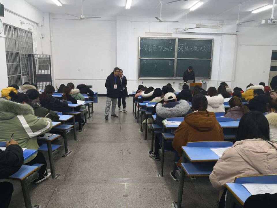 12月27日晚,体育学院组织2018级全体同学和部分2017级同学参加“校纪校规”考试。体育学院副院长林秋菊、党委副书记高栋梁、教务负责老师及部分辅导员老师参与巡考,高年级全体学生党员参加监考。