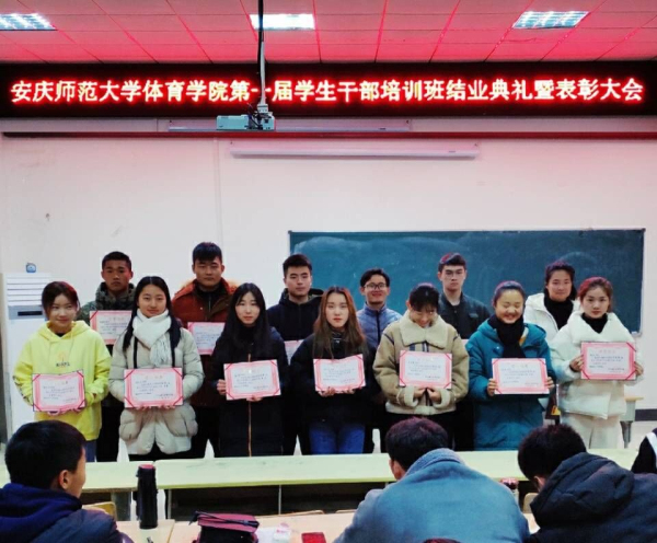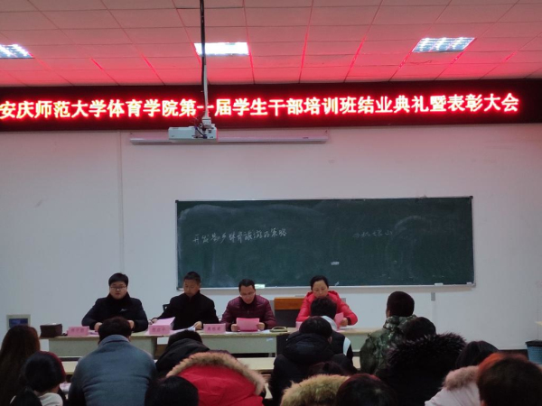 1月3日晚上,体育学院举行第一期学生干部培训班结业典礼暨表彰大会。学院党委副书记高栋梁、相关辅导员、第一期培训班顺利结业的49名学员参加了典礼。