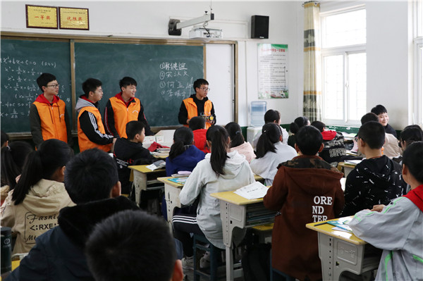 27名志愿者分成4个小组,分别进入大龙山中学七年级的4个班级支教有关物理方面的知识。“我们支教主要是以课本为基础,也会展示课本外的知识,体现物理与电气工程学院的特色,同时也让学生们提高对物理的兴趣。”电子信息科学与技术专业2017(2)班的肖悦说。