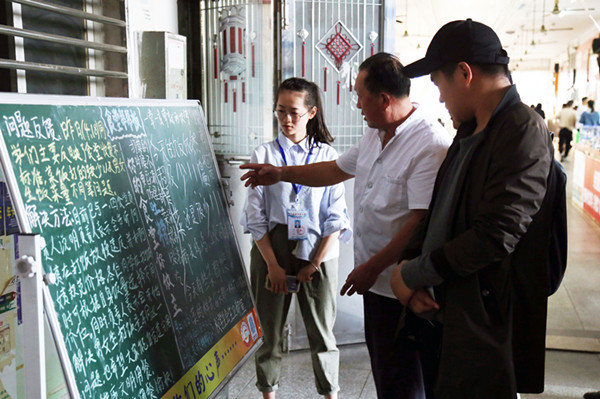 “‘帮帮板’板面分为‘吐槽’和‘问题反馈’两个部分。‘吐槽’部分可供学生们写下对食堂的意见或建议,‘问题反馈’部分则用来展示典型问题的汇总和解决办法。”学生会生卫部干事周永然介绍,每天学生们在“帮帮板”上写下“吐槽”后,生卫部值班人员会在下午课后拍照收集信息并结合官号发来的问题进行汇总,再将整理好的问题反馈给食堂经理并与经理协商解决办法。
