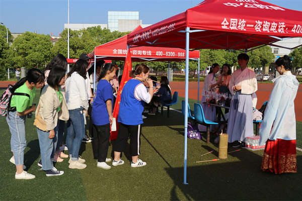除了精彩的舞台节目表演,活动现场还设有23个游园会游戏项目,游戏项目涉及文化、体育、经济等多个领域。不仅有“萝卜蹲”等童趣游戏,还有“知识竞答”“金融大闯关”等智力游戏,各社团的帐篷前排满了长长的队伍,现场气氛热闹非凡。