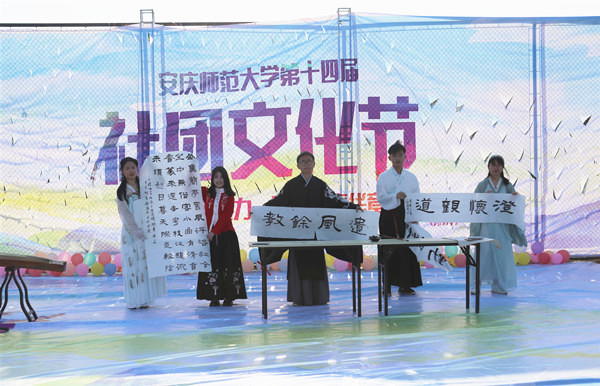 汉服社演绎汉服舞蹈、书画协会展示书法秀、手语协会带来手语表演……文艺展演环节中,12个社团代表轮流展示社团特色节目。除了充满青春活力的歌舞表演、引人注目的手语表演,大学生民乐协会和大学生书画协会带来的古筝演奏和书法相结合的表演方式也让观众倍感惊艳。