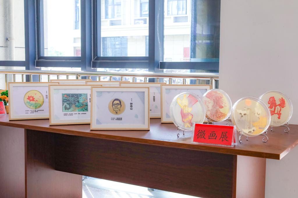 在一幅幅精美的画作中,作品《袁隆平》和《钟南山》汇聚着学生们的目光。“没想到培养皿上也可以描摹出这么栩栩如生的画,真是太厉害了!”生物科学类专业2022(6)班的黄睿发出感叹。她表示,看到以榜样人物为原型创作的微生物画,她感到既新奇又兴奋。“这样的作品展览鼓舞我们牢记榜样事迹,学习他们的精神,并付诸于行动。如果有机会,我以后也想亲手尝试制作类似主题的微生物画,向祖国献礼。”