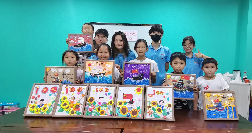由于孩子们年级较低,团队成员决定开设绘画、黏土、剪纸三门核心课程,以保证孩子们的学习兴趣。首先介绍绘画样图中各个元素,让孩子们先对一幅画有一个清晰的认识,然后再耐心地教画。“我们这次选取的样图也是专门针对党史主题的,上面有很多特殊元素。”团队成员大一学生蒋旭说,“有的图片中运用多种元素,我们特意提前上网搜索,努力用最通俗易懂的形式介绍给孩子们。”他说,这是自己进入大学以来第一次的教学实践,在教小孩子的同时,自身的各方面能力也得到了很大的提升。