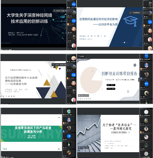 本次线上答辩共有37个项目进行了答辩汇报,各团队从项目研究目标、研究成果、存在的问题及改进措施等方面进行了详细介绍,答辩组老师对各项目一一进行了提问和点评,对同学们在项目实施过程中所付出的努力给予了肯定,并就研究成果优化、项目应用前景、结题材料撰写注意事项等问题提出了宝贵意见与建议。