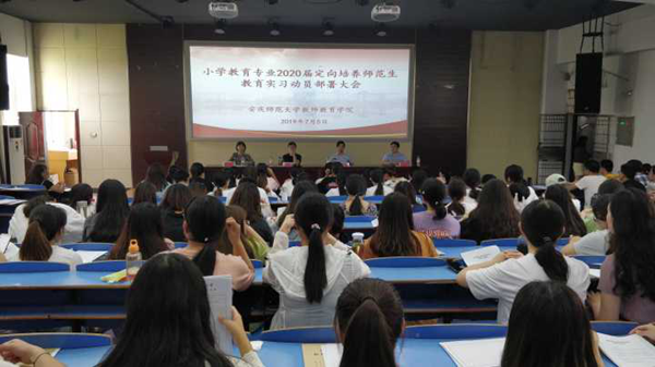 7月5日,教师教育学院小学教育专业2020届定向培养师范生教育实习动员部署会在多媒体报告厅D111举行。教师教育学院副书记许世平、副院长汪洋、小学教育专业负责人、小学教育专业辅导员以及2020届全体定向培养师范生参加大会。