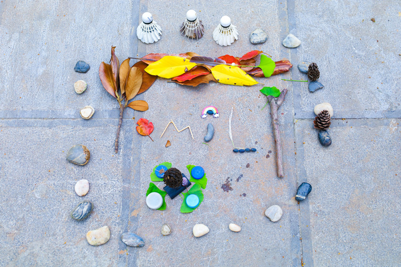 “今日的清园活动,我们组对篮球场、网球场附近的垃圾进行‘地毯式’的清理。希望通过今天的活动我们能提高环保意识,从自身做起,并带动身边的人爱护环境。”活动负责人之一、小学教育专业2020级(3)班的钱伟伟表示,个人的想象力有限,但是团队的创造力是十分丰富的,“在今天的自然创作环节,我感受到了团结协作的力量。”