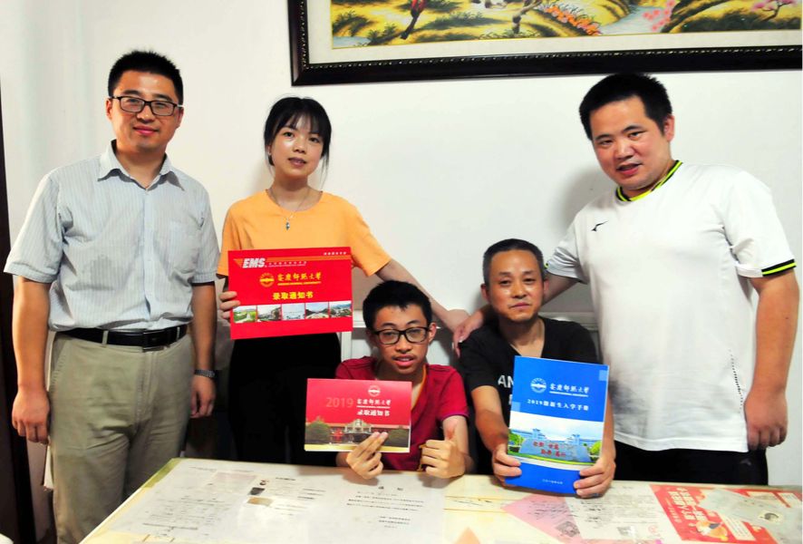 南陵阳光学子管同学从小就双下肢残疾无法行走,上下学需要父亲骑电瓶车接送,在校上厕所需要同学搀扶,但是坚持刻苦学习,在今年高考中考出499分,填报beat365官网应用统计学专业并被录取。