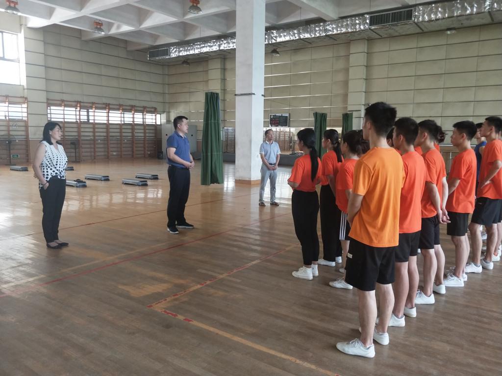 8月6日,体育学院党委书记王开友、副院长林秋菊、党委副书记高栋梁一行来到体育学院考研自习室与健美操馆,慰问暑期留校备战考研和赛事集训的学生。