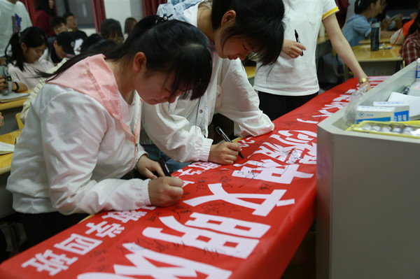 恋爱是大学生活中必不可少的话题,而恋爱过程中产生的各种各样的问题也困扰着大学生们。在第三个环节“恋爱对对碰”中,同学们便针对恋爱中常见的问题进行了探讨和交流。该班的心理委员汪俊杰也分享了自己的一些经验与心得,她表示:“这样形式的交流可以帮助大家树立正确的爱情观,也有利于我们的心理健康发展”。活动最后,每位同学在横幅上签下自己的名字,并获得一条红绳作为纪念。