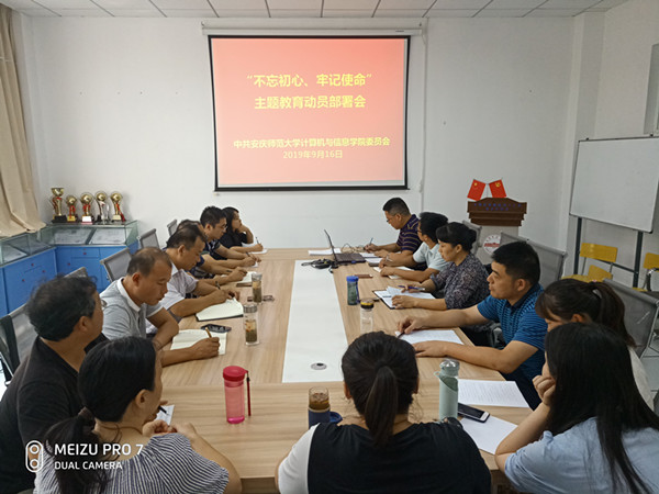 9月16日,计算机与信息学院在稼先楼一楼会议室召开“不忘初心、牢记使命”主题教育动员部署会。学院全体党委委员、科级干部、党支部书记及各办公室负责人等参加了会议,会议由该院党委书记陈银凤主持。