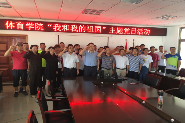 在学校开展“不忘初心、牢记使命”主题教育之际,为提高党员意识,提升党性修养,增强使命感, 9月30日下午,体育学院在体育馆会议室开展“我和我的祖国”主题党日活动。学院党政领导和全院教师党员参与本次活动。