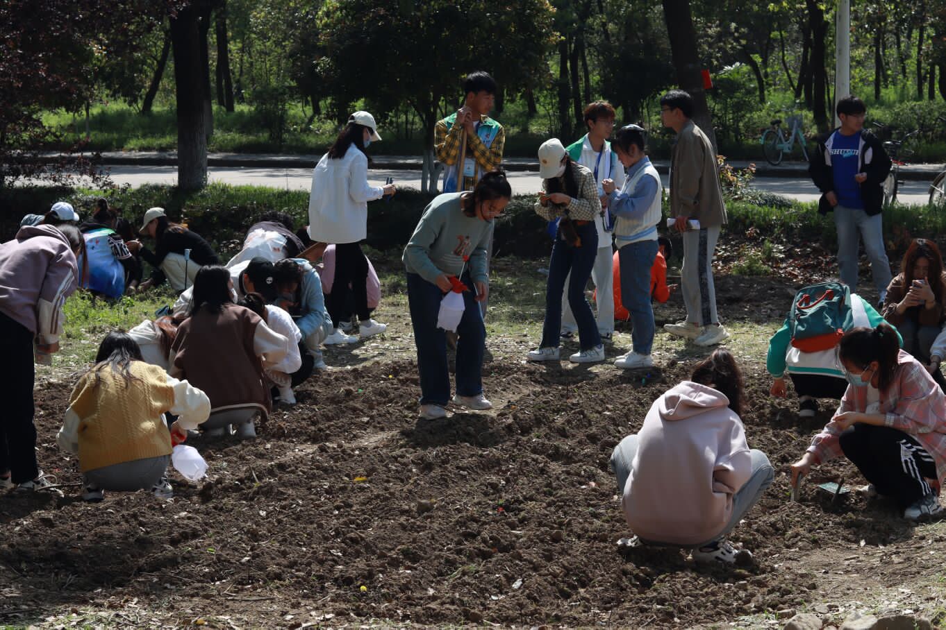 “挖坑不能太深,盖土不能太实,要有足够的透气性。”来自2020级生物技术专业的吕金婕一边种植着自己的花种,一边为周围的同学提供着指导。她表示,作为生命科学学院的学生,自己对于植物一直都很有兴趣,一听说清明期间有种花的活动,就立刻报名参加了。