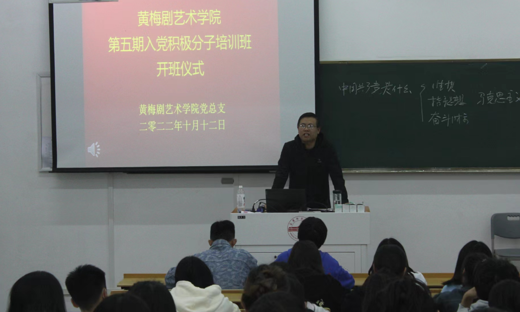 10月12日,黄梅剧艺术学院分党校在菱湖校区214教室举办第6期入党积极分子培训班开班仪式暨新生入党启蒙教育大会。学院党总支书记汪博武,培训班班主任、全体辅导员、第6期入党积极分子以及2022级全体新生参加开班仪式。