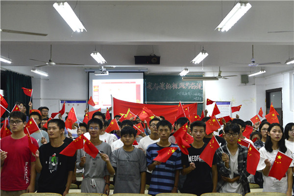 手拿国旗,共唱国歌,祝福祖国生日快乐……9月29日晚,计算机与信息学院通信工程专业2019级的两个班在文渊楼203教室举办了“我与祖国共奋进”的团日活动,近100名同学在国歌声中展现自己对祖国的祝福。