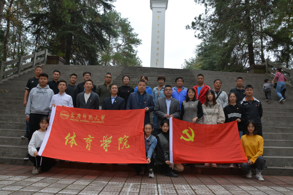 10月13日上午,体育学院党委组织全体教工党员及部分学生党员代表赴岳西大别山烈士陵园开展“不忘初心、牢记使命”革命传统教育,学院党委书记王开友、院长章翔、党委副书记高栋梁、副院长林秋菊和全体教职工党员以及及部分学生党员一行30多人参加了此次教育活动。