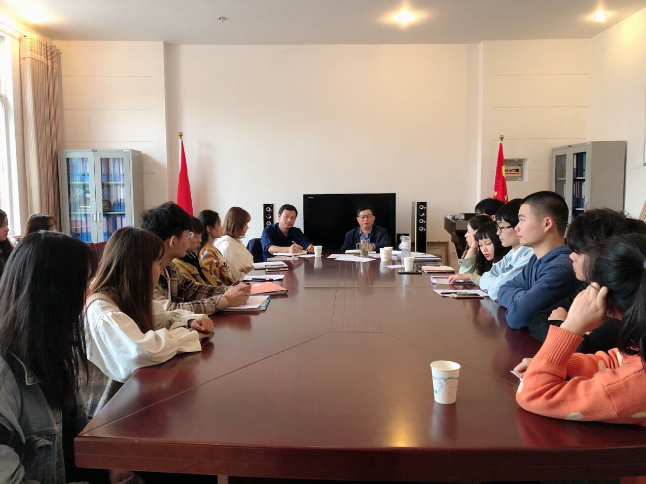 10月16日下午,音乐黄梅剧艺术学院党总支在艺术楼一楼会议室召开“不忘初心、牢记使命”主题教育座谈会,面向学生代表征求意见建议。该院党总支书记李新建、副书记肖之进、党总支秘书、学生支部书记、团委书记和25名学生代表参与座谈。