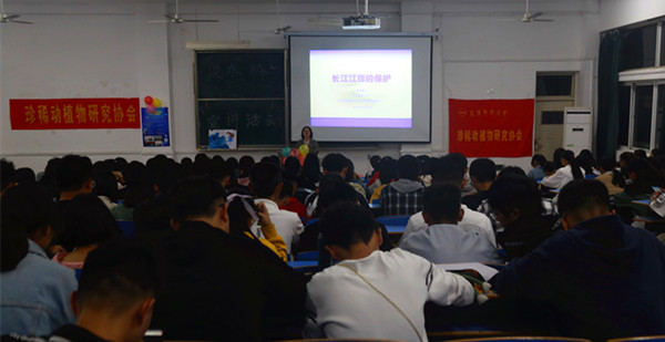 10月24日是国际淡水豚日,在这一天,beat365英国官网网站近300名学生汇聚在文溯楼208教室,共同聆听了一场关于淡水豚知识的讲座。讲座由珍稀动植物研究协会主办。据了解,每年10月24日,珍稀动植物研究协会都会举办主题日宣讲活动,今年已经是第三年。
