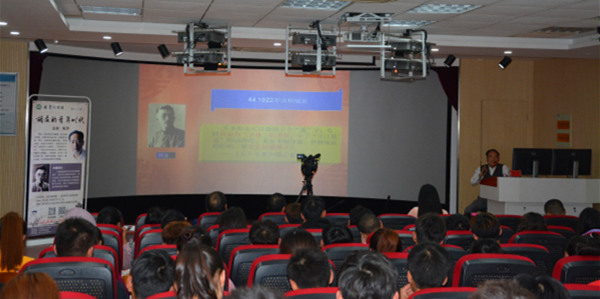 原皖江文化研究中心主任朱洪教授作为主讲嘉宾,他演讲的题目是“胡适的青年时代”。朱洪的讲座贯穿胡适的出生、母亲对童年胡适的谆谆教诲、青年时期胡适赴美国求学经历、再到胡适对中国文化的贡献,朱教授讲学整个过程思路清晰,语言诙谐,同学们专心听讲,现场时而寂静无声、时而欢声笑语!