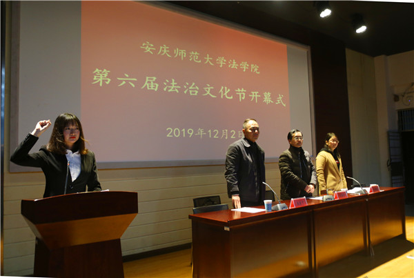 从光梅表示,第六届法治文化节的举办,目的在于学习贯彻党的十九大和十九届二中、三中、四中全会的精神,贯彻落实习近平总书记全面依法治国新理念新战略、弘扬宪法精神,强化法治文化对广大师生的精神引领功能,丰富大学生的校园生活。(文/学生记者 邓宇 图/学生记者 刘莎)
