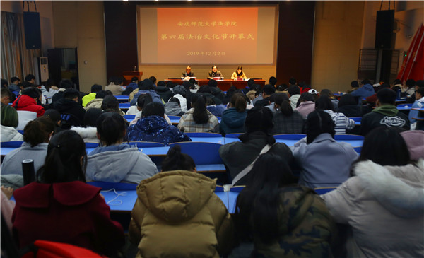 12月2日晚,法学院第六届法治文化节开幕式在beat365英国官网网站龙山校区文津楼举行。法学院党总支书记詹德全、副院长朱留虎、党总支副书记从光梅等出席仪式,2019级全体研究生、本科生以及学生会全体成员等200余人参与开幕式。