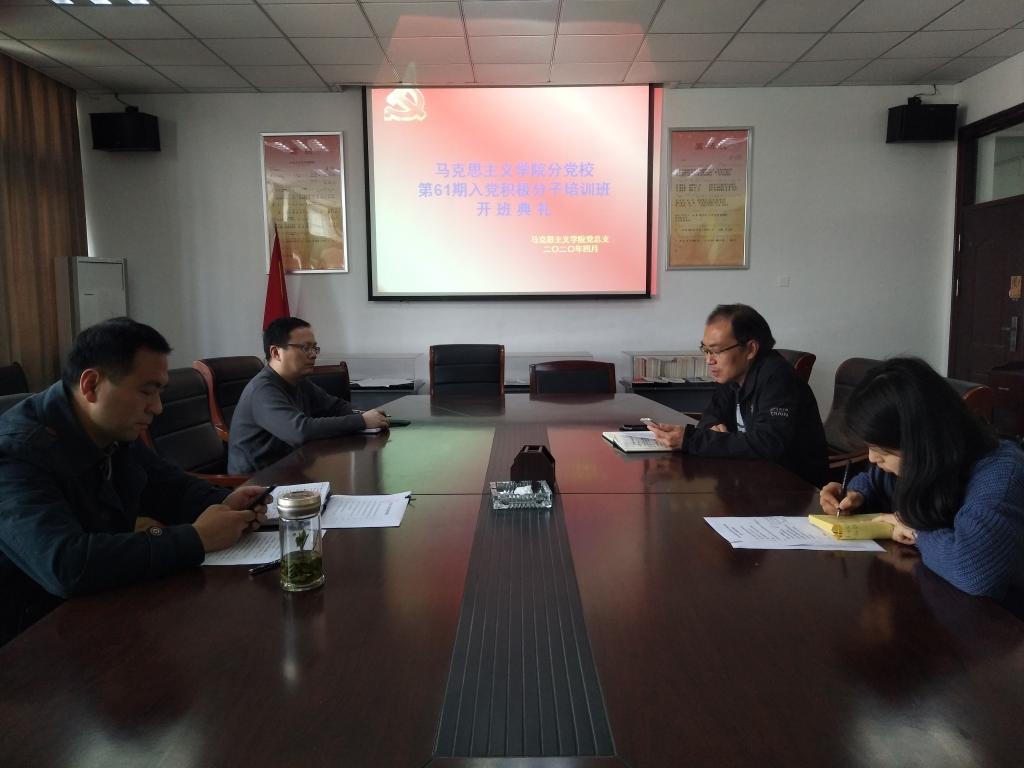 4月15日下午,马克思主义学院第61期入党积极分子培训班开班仪式在线上举行。学院党总支书记金文斌、分党校班主任、学院辅导员及全体学员参加了开班仪式。