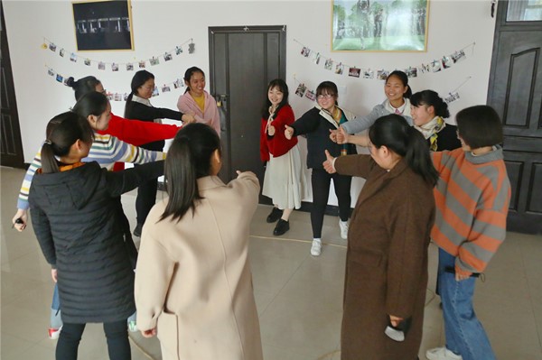 同学们在商量后决定让五位同学站在圆内面向外面,六位同学站在圆外面向里面。“站在里面的同学象征团结,站在外面的同学象征冲出包围圈,不要禁锢思想。”黄洁身为队长对团队的造型做出了解释,而其他队员也在游戏中获益匪浅。吴静表示:“要提出意见,也要学会听取别人的意见。”高春玲说:“一个团队一定要有组织有纪律。”